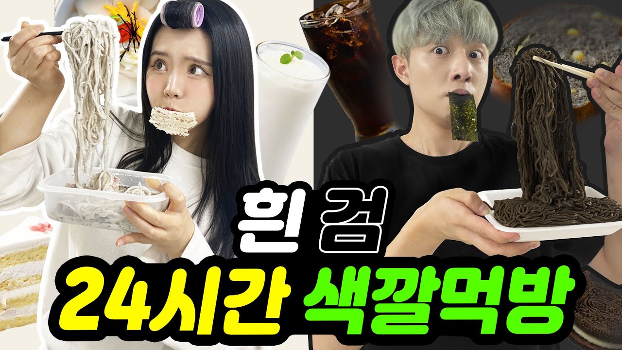 24시간동안 하얀색 VS 검은색 음식만 먹기 대결!ㅋㅋㅋ과연 어떤색이 더 맛있을까? [띠미]