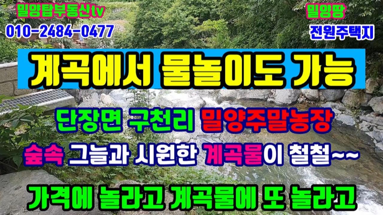 가격인하 매8천5백만원 .매물번호:0719 밀양땅 단장면땅 구천리 주말농장 계곡물이 철철 흘러요. 여름 캠핑 구천리주말농장으로 오세요.