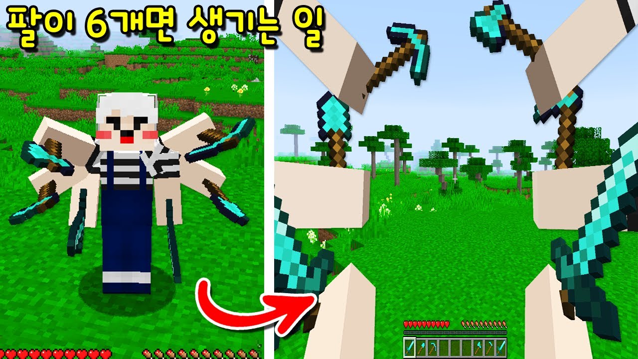 마크에서 '팔을 6개로 늘리는 방법'! 팔이 6개가 되면 생기는 일! 팔 6개면 핵사기 아냐?ㅋㅋㅋ [마인크래프트]