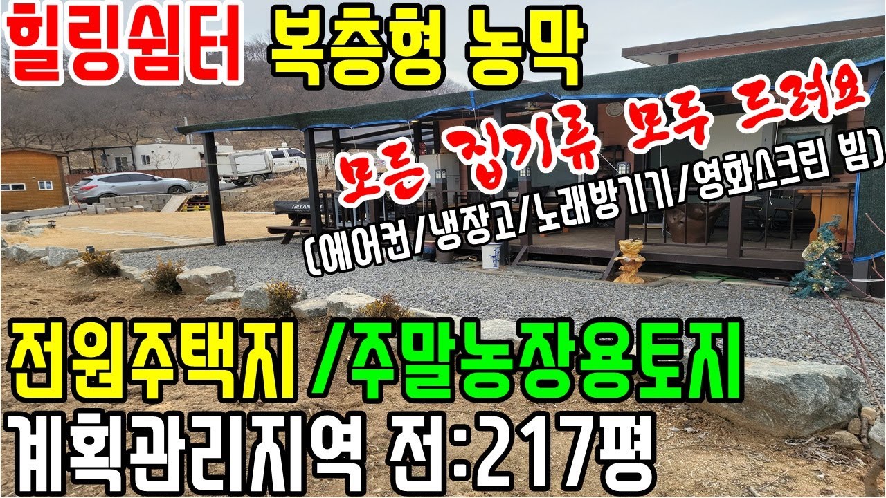 공주부동산/공주토지매매(no.2-322번."몸만오셔서 쉬어가세요!!-에어컨/냉장고/노래방기기/영화스크린 빔등-집기류 모두드려요)-복층형 농막설치/상수도 지하수.계획관리지역:217평